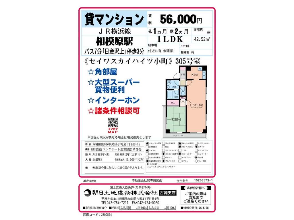セイワスカイハイツ小町への お問い合わせは朝日土地建物株式会社 賃貸部まで