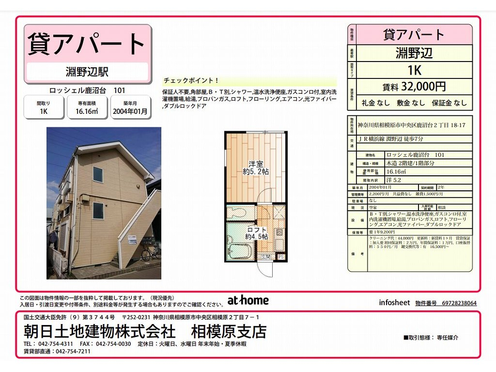| 主要アクセス | 横浜線 淵野辺駅 から 徒歩7分 | 専有面積 | 16.16m 2 ( 4.88坪 ) | ||