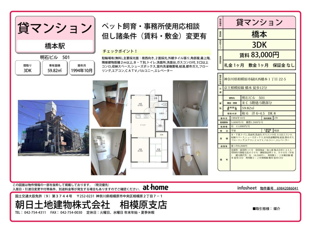 | 主要アクセス | 京王相模原線 橋本駅 から 徒歩12分 | 専有面積 | 59.82m 2 ( 18.09坪 ) | ||